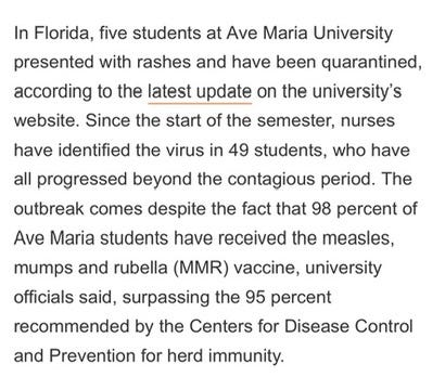 Another article title caught my attention: “Florida Measles Outbreak Among Highly Vaccinated Population.”